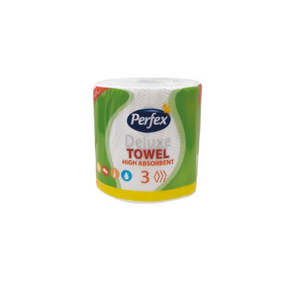 Premium troslojni kuhinjski ubrus izrađen od najkvalitetnije, mekane i izuzetno upijajuće celuloze. Perfex Deluxe pruža vrhunsku snagu upijanja i otpornost na cepanje, idealan za čišćenje kuhinjskih površina, prosutih tečnosti i svakodnevnu higijenu doma. Pakovanje sadrži jednu rolnu luksuznog dizajna — elegantno, praktično i pouzdano rešenje za maksimalnu čistoću.