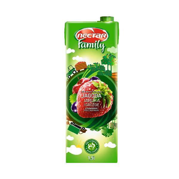 Nectar Family 50% jagoda 1.5l – voćni sok punog i osvežavajućeg ukusa jagode, napravljen od pažljivo odabranih plodova i bogat prirodnim voćnim sastojcima. Veliko porodično pakovanje od 1.5l idealno je za uživanje kod kuće, uz obroke ili tokom druženja, pružajući sladak i prirodno voćni užitak u svakoj prilici.