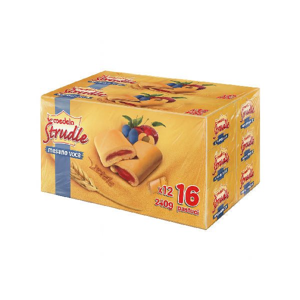 Štrudla Medela mešana 240g (paket 16 komada) – ukusna kombinacija mekanog testa i različitih voćnih punjenja, pripremljena po tradicionalnoj recepturi. Praktično pakovanje od 16 komada obezbeđuje dovoljno slatkih zalogaja za porodičnu upotrebu, posluženje gostima ili uživanje uz kafu i druženje, pružajući raznovrstan i ukusan izbor u svakoj prilici.