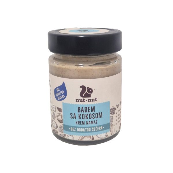 Naš badem krem sa kokosom bez dodatog šećera donosi laganu, kremastu teksturu i bogat, egzotičan ukus koji osvaja na prvi zalogaj.