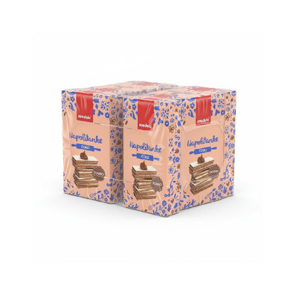 Medela vafl čoko posno 400g (paket 12 komada) – hrskavi vafl listići premazani bogatom čokoladnom kremom, pripremljeni po posnoj recepturi. Praktično pakovanje od 12 komada obezbeđuje dovoljno poslastica za porodičnu upotrebu, posluženje gostima ili uživanje uz kafu i druženje, pružajući lagan, ukusan i posan zalogaj u svakoj prilici.