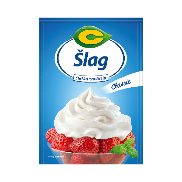 Lagani i penasti šlag koji se priprema bez mleka. “C” Šlag sa vodom od 40 g jednostavno se muti sa hladnom vodom i brzo dobija bogatu, stabilnu i vazdušastu teksturu. Idealan je za ukrašavanje torti, kolača, voćnih salata i drugih poslastica. Zadržava svoj volumen i oblik duže vreme, a neutralan ukus ga čini savršenim dodatkom svakom desertu.