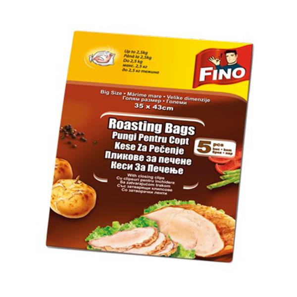 Toplotno otporne kese za pečenje namenjene za pripremu mesa, povrća i drugih jela u rerni. Fino kese zadržavaju sočnost i aromu hrane, sprečavaju prskanje i zaprljanje rerne. Pogodne su za pečenje do visokih temperatura, bez potrebe za dodatnim uljem ili masnoćom. Bezbedne za upotrebu sa svim vrstama pećnica. Pakovanje sadrži 5 komada — praktično, higijensko i ukusno rešenje za jednostavno pečenje.