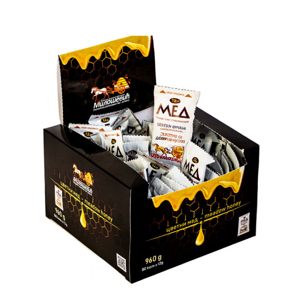 Med Milošević u kesicama donosi prirodni domaći med u praktičnom pakovanju od 80 komada — savršeno za kancelarije, hotele, ugostitelje, ali i za svakodnevnu upotrebu kod kuće ili u pokretu.